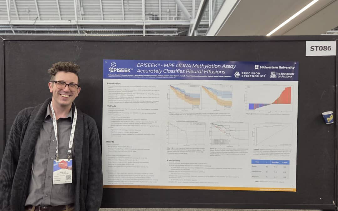 Tucson, AZ —  Precision Epigenomics, a molecular diagnostics company developing next-generation epigenetic assays, today announced new results from a study conducted in collaboration with investigators at the University of Arizona and Midwestern University demonstrating performance of the EPISEEK®-MPE assay. The findings were presented in a scientific poster at the recent Association for Molecular Pathology (AMP) meeting in Boston, Mass.